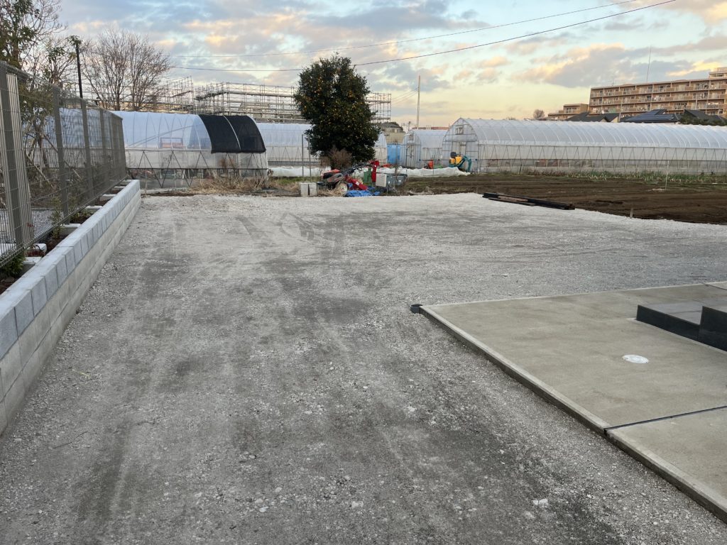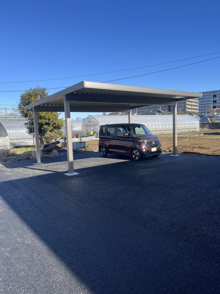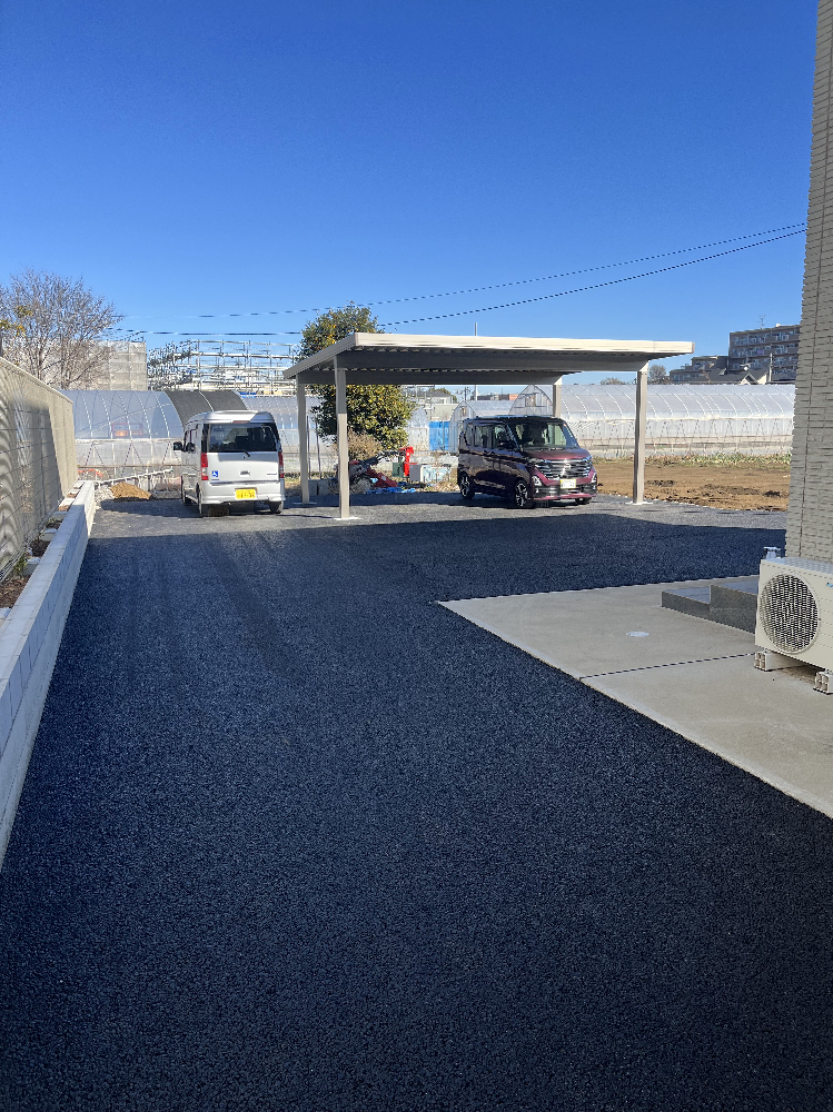 駐車場をアスファルト舗装し、2台駐車できるカーポートを設置